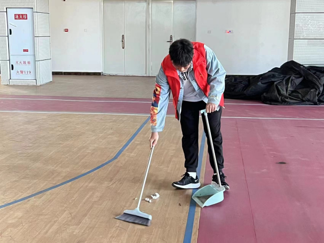 不放过操场上的每一张纸屑