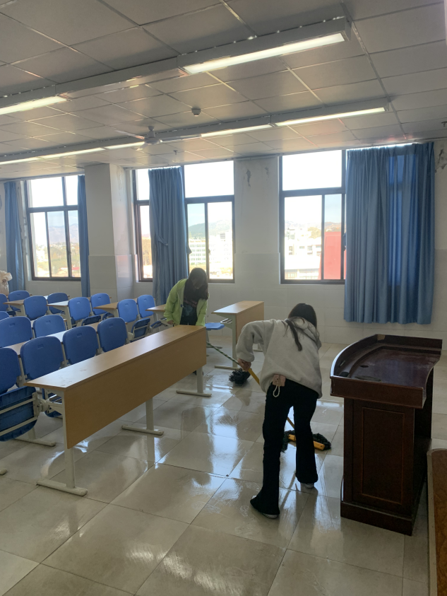 打扫着校园各个角落