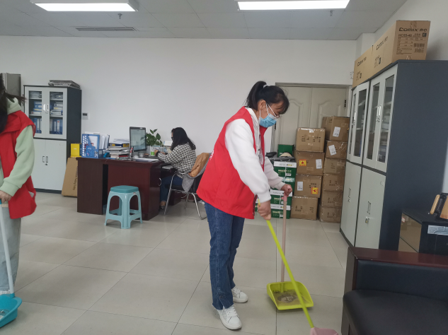 拿起扫帚、抹布等清扫工具