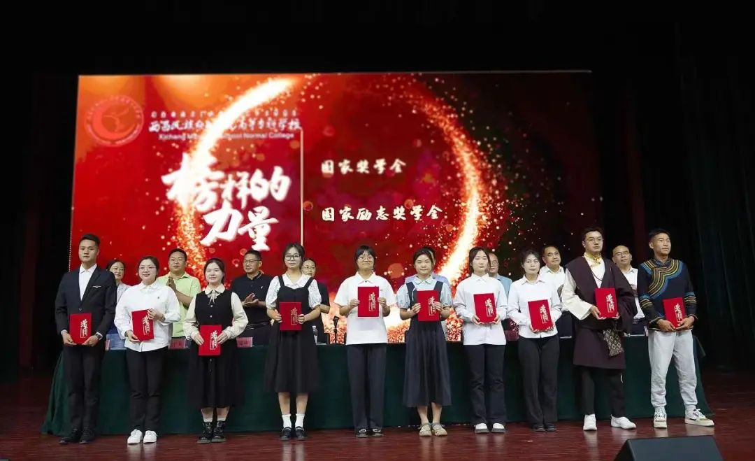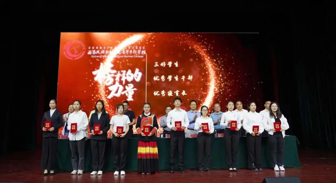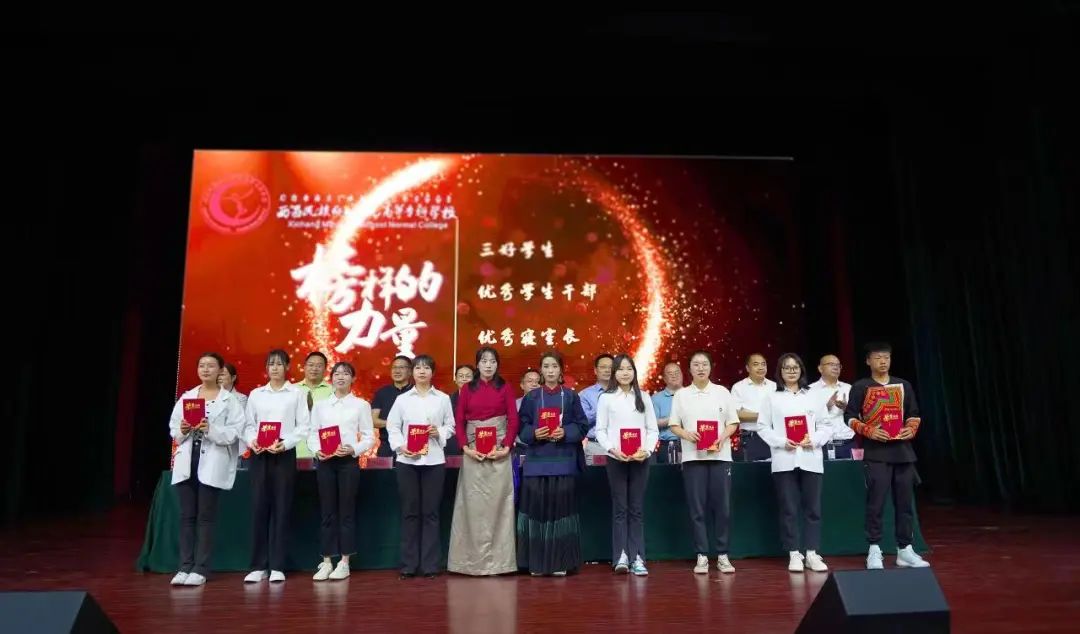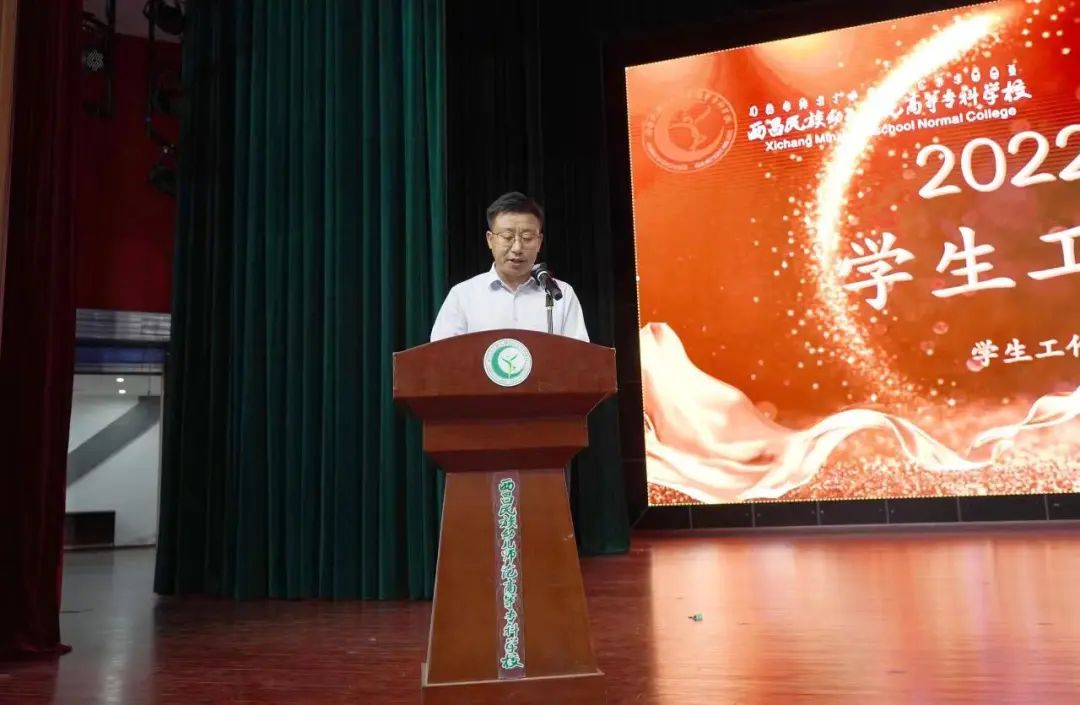 典礼上,学生工作处处长邹华作《2022年度学生工作报告》,回顾了一年来在学生思想政治教育、学生日常管理、资助育人、职业规划与就业创业指导、常态化疫情防控等方面的学工工作,表示在接下来的工作中将进一步提升管理服务能力,为早日把我校建成民族地区一流、特色鲜明的幼儿师专贡献学工力量。