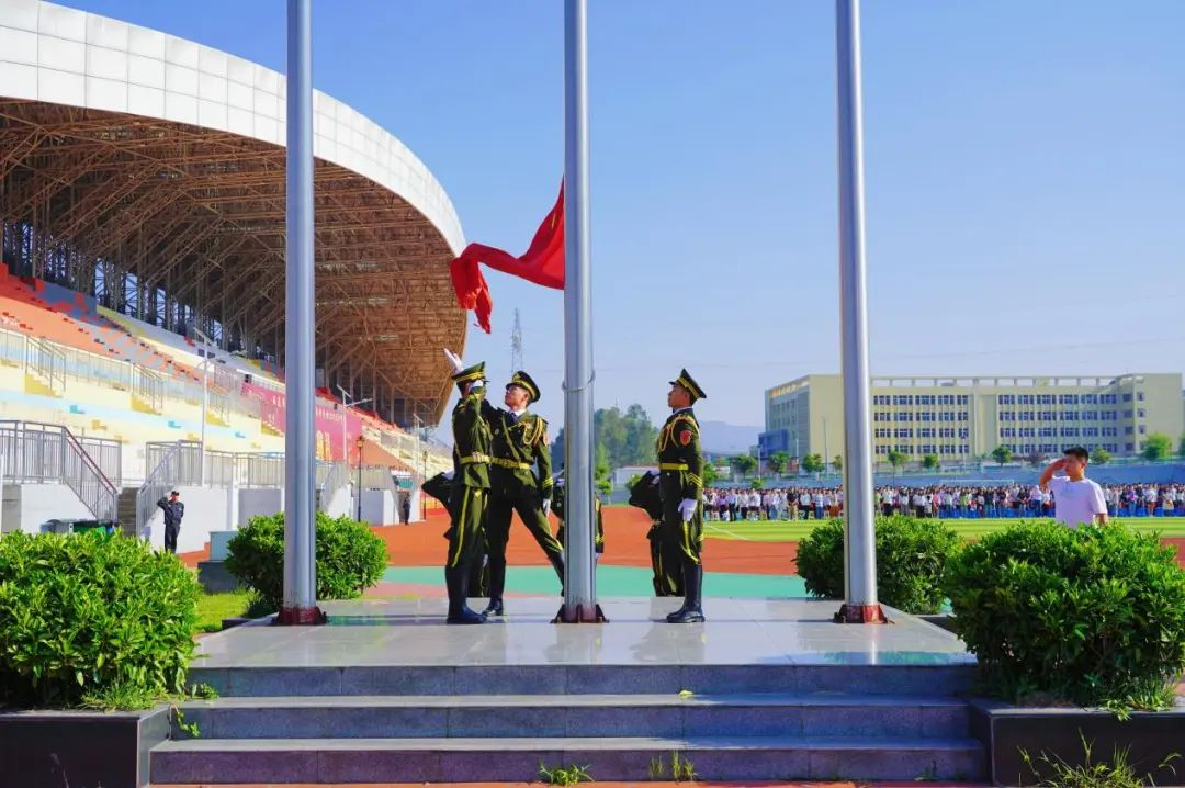 随着《义勇军进行曲》响起,全体参加人员肃立,齐唱国歌,注视鲜艳的五星红旗冉冉升起。