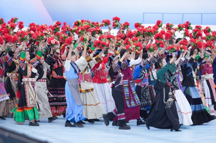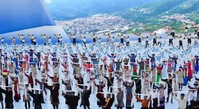 整个庆典现场洋溢着活力与喜悦的气息。各族群众身着传统服饰,全心全意地投入到这场嘉年华之中。在五彩斑斓的舞台上,西昌民族幼专朝气蓬勃的100名学生们用优美的舞姿传达着最美好的祝愿。他们的每一个动作都传递着新时代木里人民团结奋斗、幸福生活的美好画面。