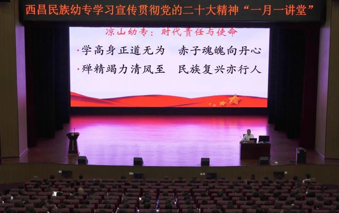 近日,为进一步学习贯彻习近平新时代中国特色社会主义思想,和巩固学校思想政治建设成果,增强师生的国家安全意识,我校特邀凉山州委国安办副主任赵联彬到校开展以“坚持总体国家安全观,坚决维护意识形态领域安全”为题的专题讲座。讲座由马克思主义学院院长柯黎主持,校党委书记卢立武,校党委副书记、工会主席王玉萍,党委委员、纪委书记沙德康,党委委员、副校长马辉,党委委员、组织人事处处长潘开成,党委委员、宣传统战部部长邹春芸等校领导出席本次讲座,各系部教师、学生代表750余人参加讲座。