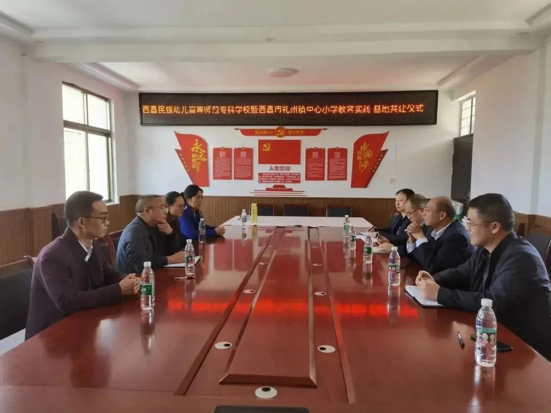 在交流座谈中,双方就人才需求与培养、课程建设等问题进行深入研讨。王晓东代表学校与礼州镇中心小学签订了教育实践基地共建协议,建立协同培养乡村教师机制。