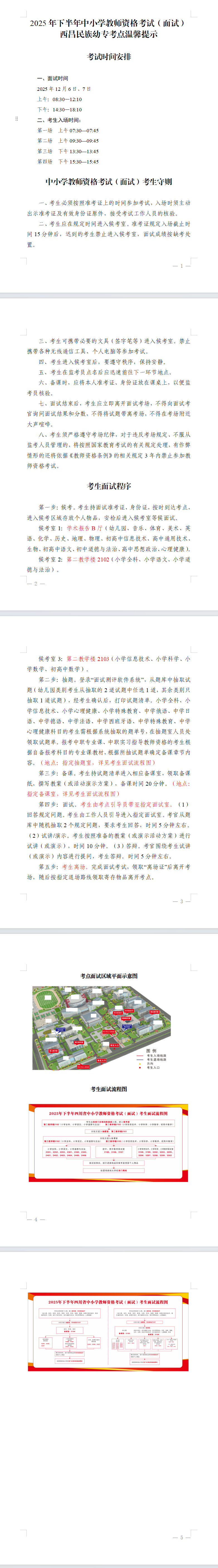 2025年下半年中小学教师资格考试(面试)西昌民族幼专考点温馨提示