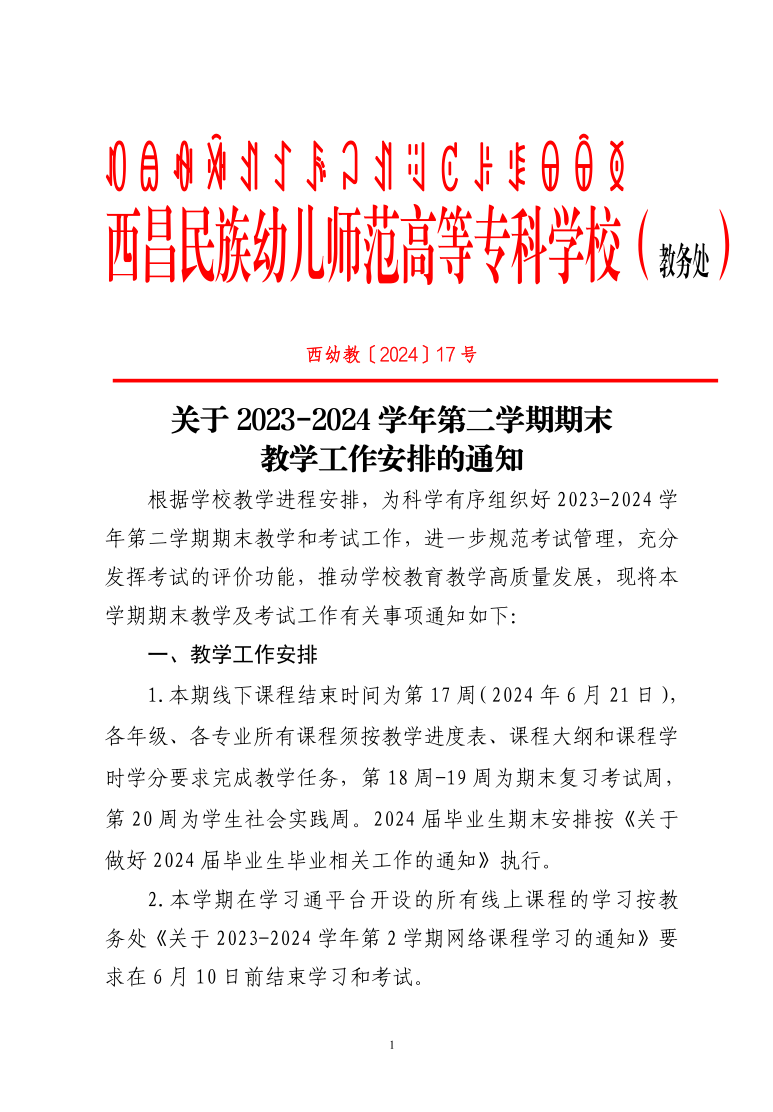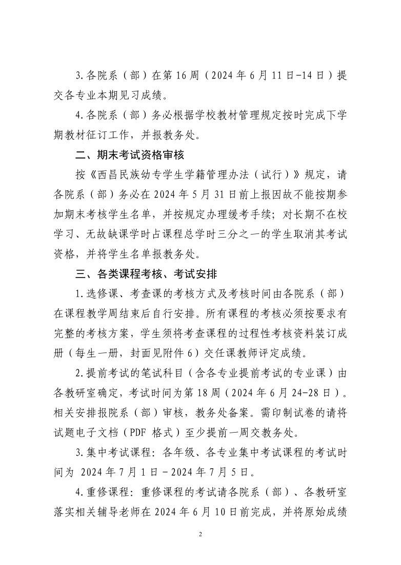 关于2023-2024学年第2期期末教学工作安排的通知