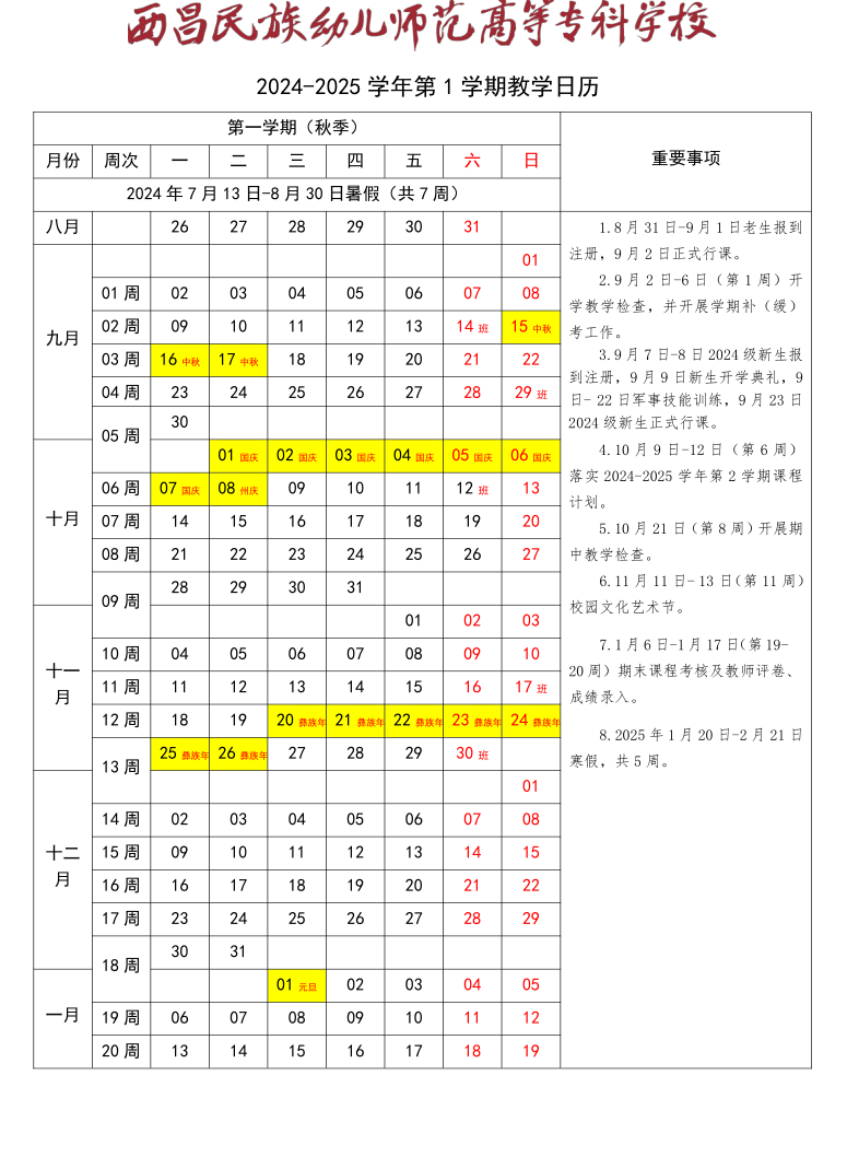 西昌民族幼专2023-2024学年第2期期末考试安排