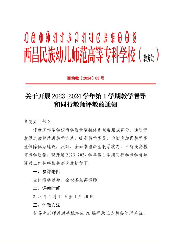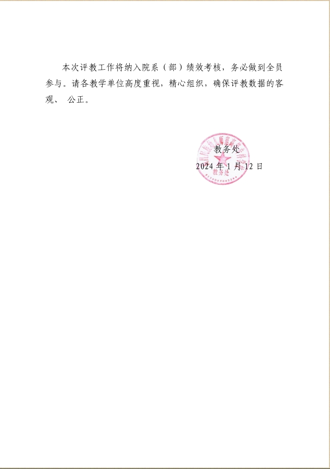 关于开展 2023-2024 学年第 1 学期学生评教工作的通知