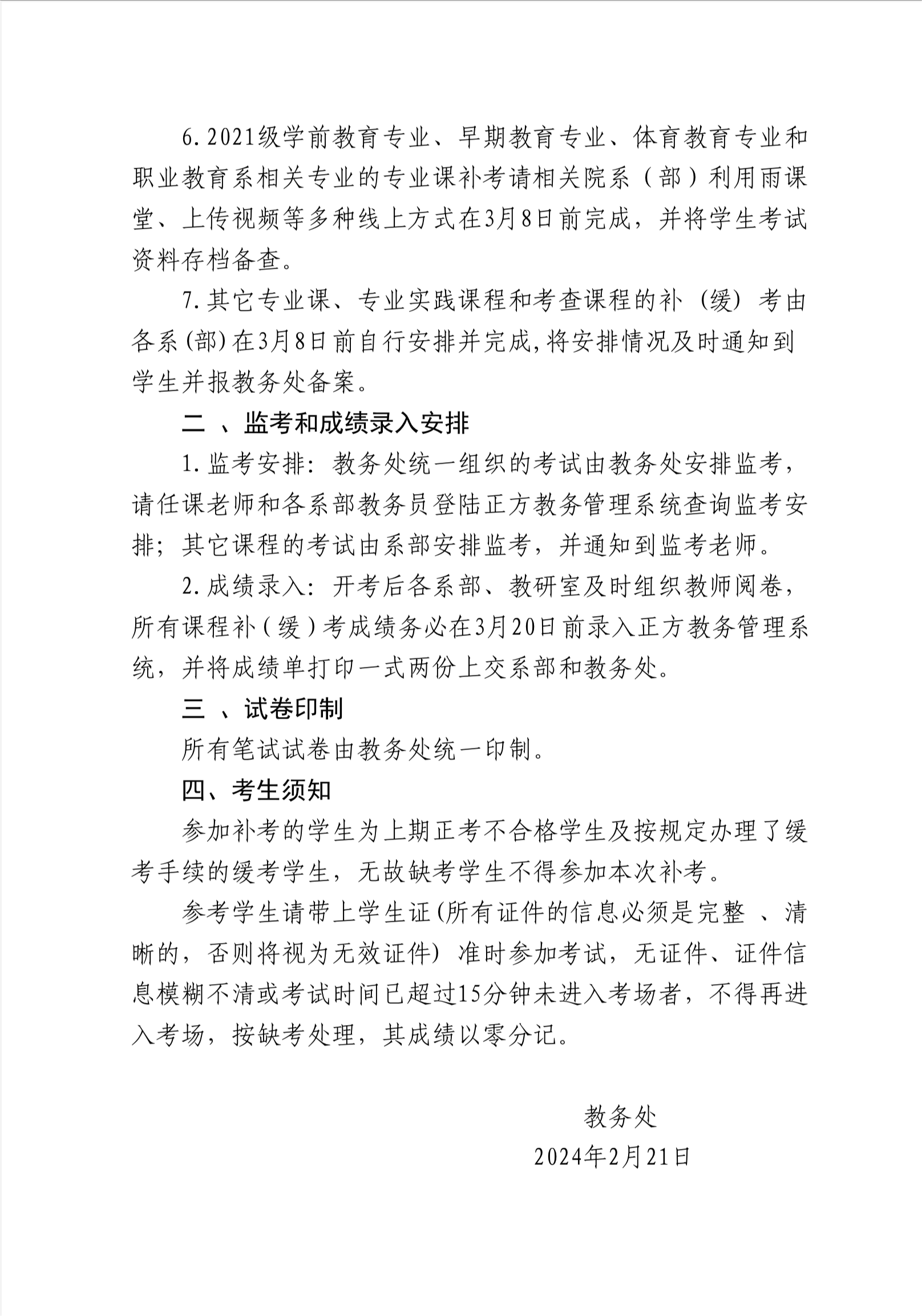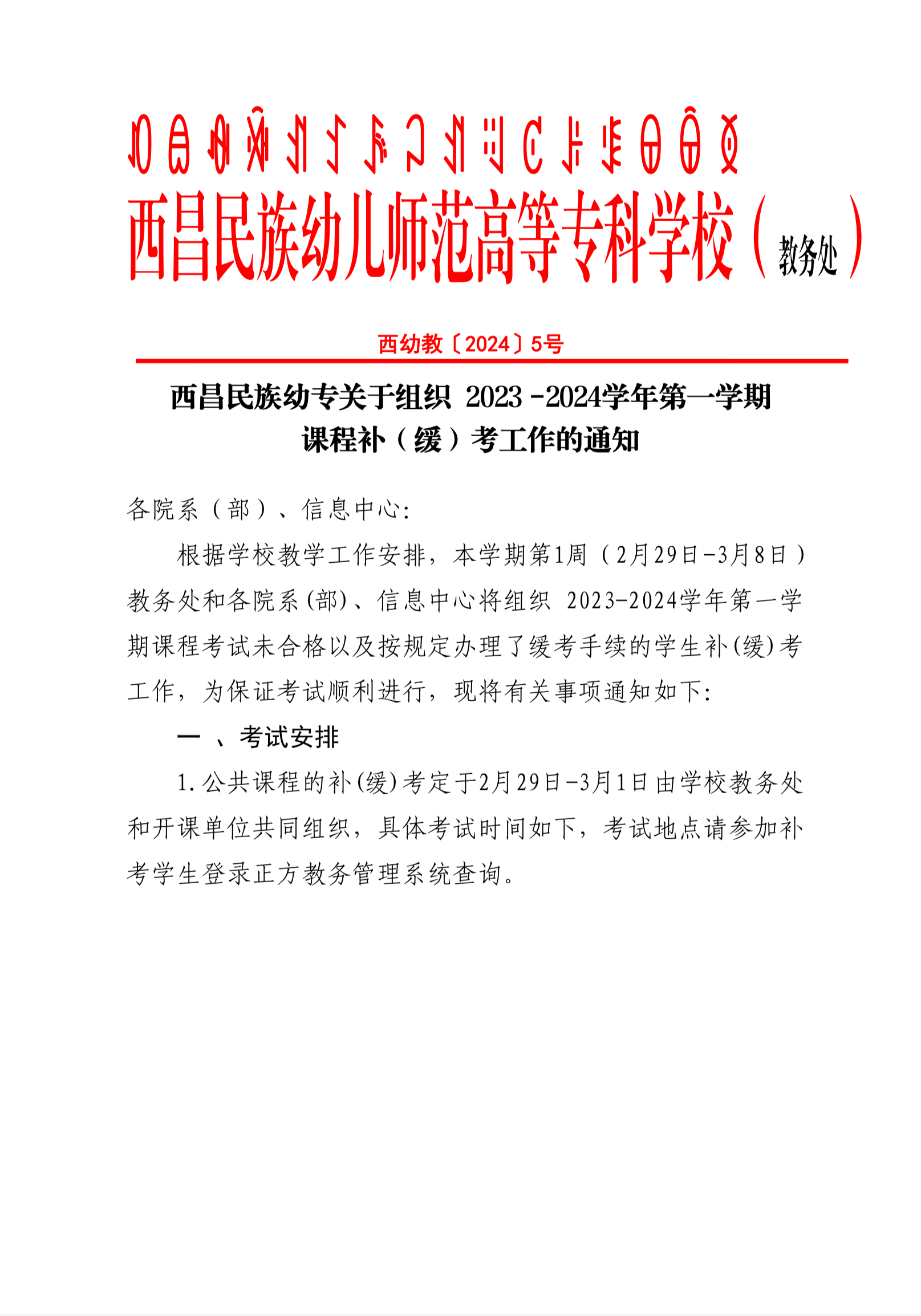 西昌民族幼专关于组织 2023 -2024学年第一学期 课程补(缓)考工作的通知
