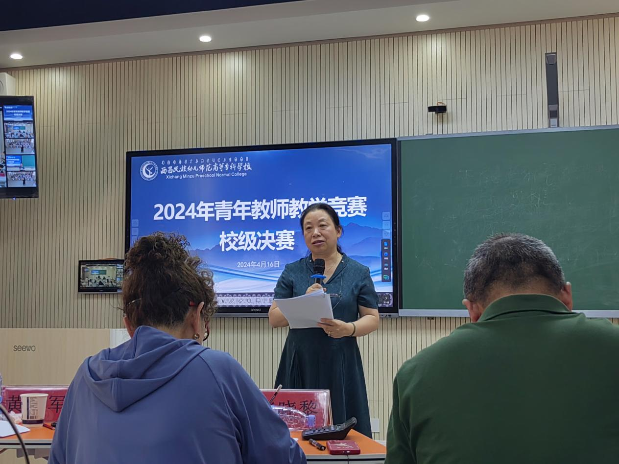 为了进一步提升青年教师教学能力,提高学校教学质量水平。4月16日下午2点,教务处组织开展2024年西昌民族幼儿师范高等专科学校青年教师教学竞赛暨第七届四川省高校青年教师教学竞赛校内预选赛。教学竞赛活动在第二教学楼2208举行,由教务处处长周雪娟主持,特邀四川师范大学校级督导黄尚军教授、张晓黎教授、张绍平教授、戴艳教授作为评审专家,各系(院)部分管教学负责人,各教研室负责人及教师代表观摩竞赛。