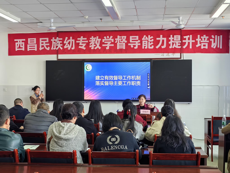 2024 年 11 月 11 日上午,在西昌民族幼专“第五届校园文化艺术节”的热烈氛围中,来自四川师范大学的祁晓玲教授,为西昌民族幼专的校、系督导们带来了“建立有效督导工作机制,落实督导主要工作职责”为主题的教学督导能力提升培训讲座。