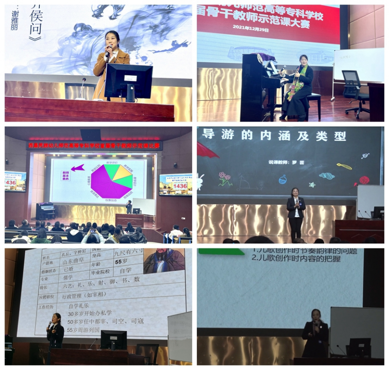 为深入实施新课改,促进我校教师队伍专业化发展,鼓励学校骨干教师以赛促教、以教促学,充分发挥骨干教师的教学示范、引领和辐射作用,给广大教师提供学习、交流和借鉴的平台,进一步提高教育教学和人才培养质量。2021年12月29日下午,西昌民族幼儿师范高等专科学校首届骨干教师示范课比赛在学术报告A厅举行本次比赛由教师发展处、教务处、教学督导办承办,共6名骨干教师参加了比赛