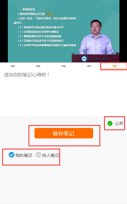 视频播放过程中,学员可自行记录学习笔记或可查看其它学员的学习笔记。