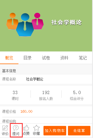 学员可在课程底部(提问)处提出问题参与互动。