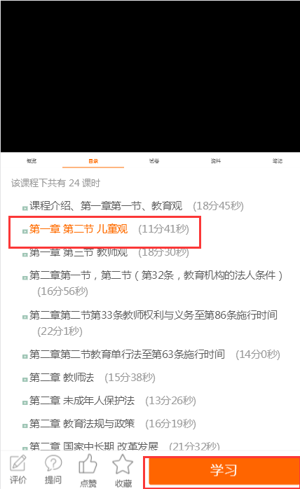 点击视频进行播放,(未学习过的课程视频无法拖动快进和直接跳播下一个课时,播放学习后即可快进)