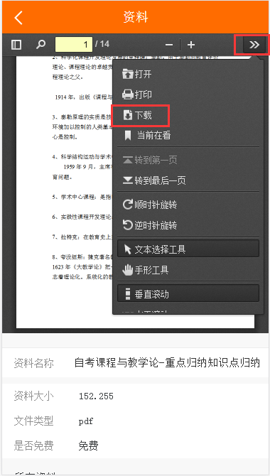 学员可查看课程的资料,可预览、下载。