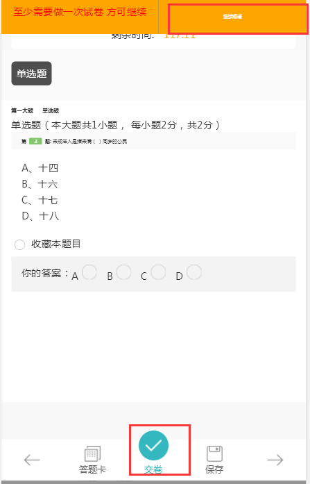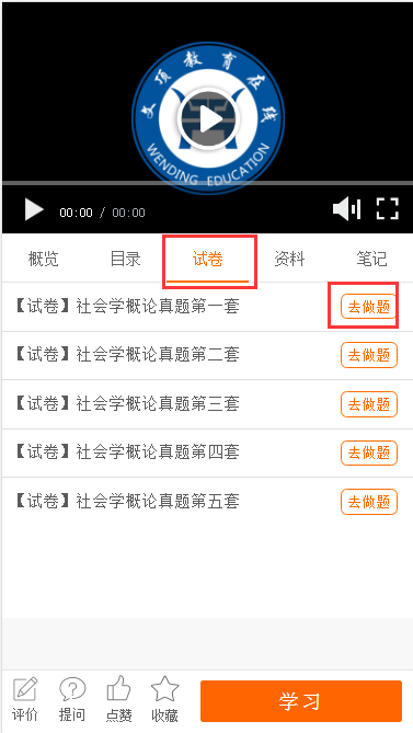 “文顶教育在线”新增知识点测验功能:学员在学习视频过程中,会按照课时中的知识点自动弹出测验试题,以巩固和加强学习成果。交卷完成点击继续观看。