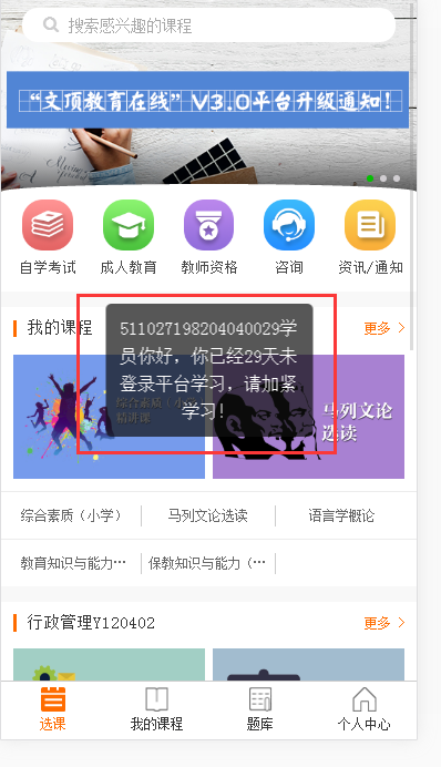 超过学校制定的学习计划时间没有登录平台学习,学员登录时平台将发送提醒。