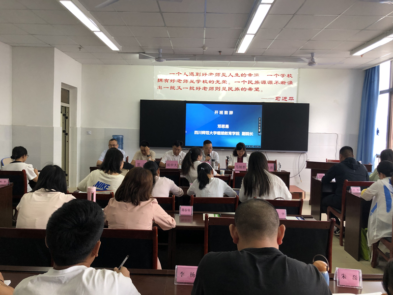 开班仪式上,邓思易副院长作了热情洋溢的开班致辞,他代表四川师范大学,对新同学表示最热烈的欢迎和衷心的祝贺,对西昌民族幼专老师们的辛勤工作表示衷心的感谢。作为四川省教育厅对口帮扶西昌民族幼专的牵头单位,两校一直保持着紧密的联系,同等学力申硕课程(凉山)班的举办,既是川师大作为高校服务社会和大众的重要举措,也是西昌民族幼专为凉山地区基础教育做出的贡献。邓思易副院长给学员们提出了三点要求:一是希望在这次学习过程中,认真把握课堂,读通经典,积累思想的深度和厚度,把个人的发展汇入时代洪流中,把个人的抱负在国家情怀中彰显;二是希望大家在学习期间要养成“学、思、悟、行”的良好习惯;三是既然选择了川师,作为川师人必然要肩负起川师精神传承的责任。