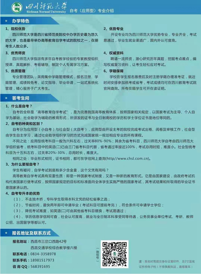四川师范大学自学考试(应用型)专升本西昌民族幼专教学点招生宣传