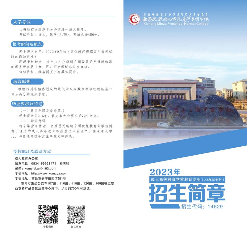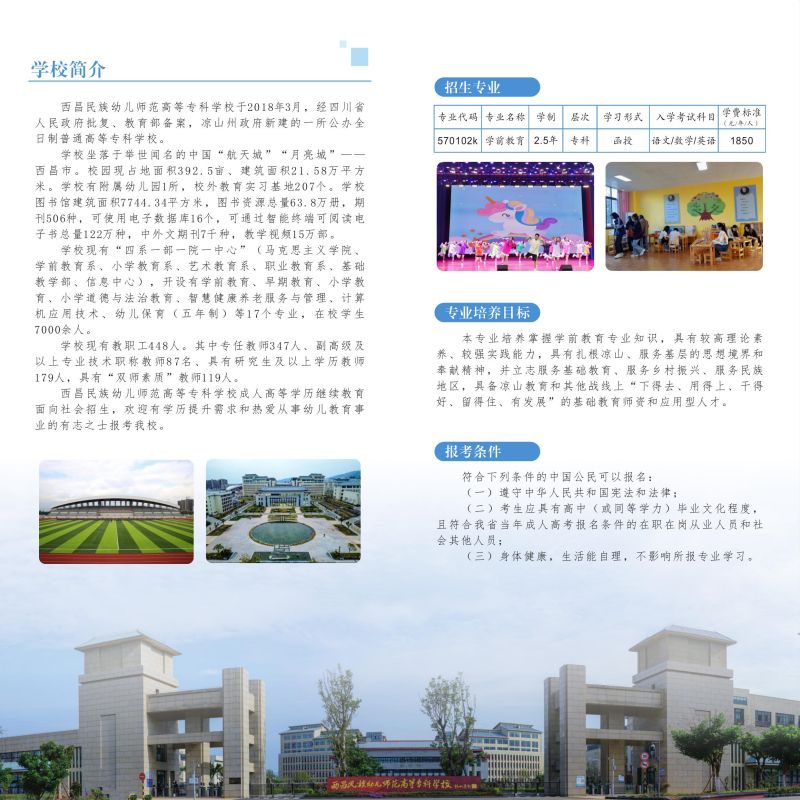 2023年西昌民族幼专成人高等教育学前教育专业招生简章