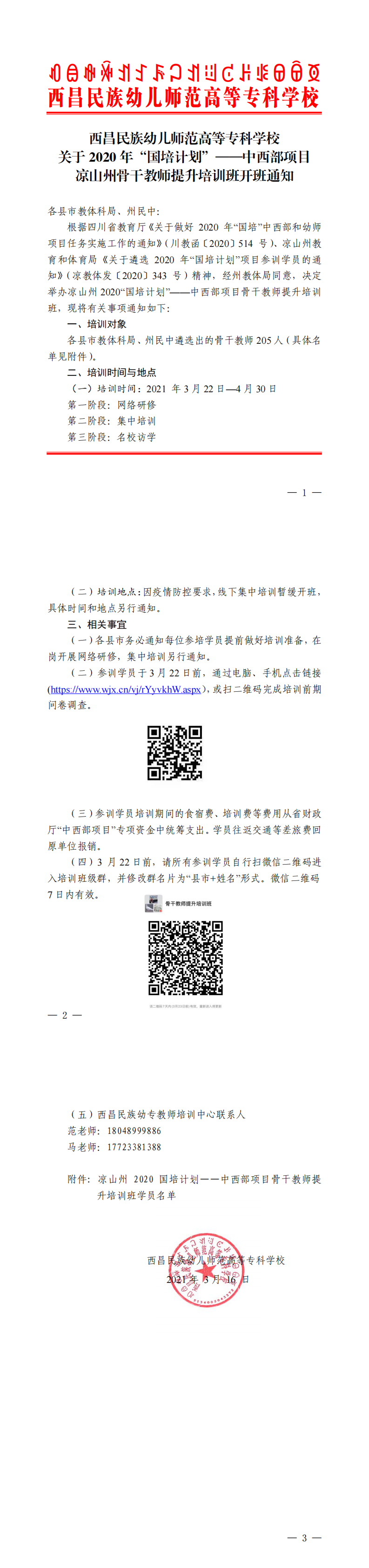 2020年“国培计划”——中西部项目凉山州骨干教师提升培训班开班通知