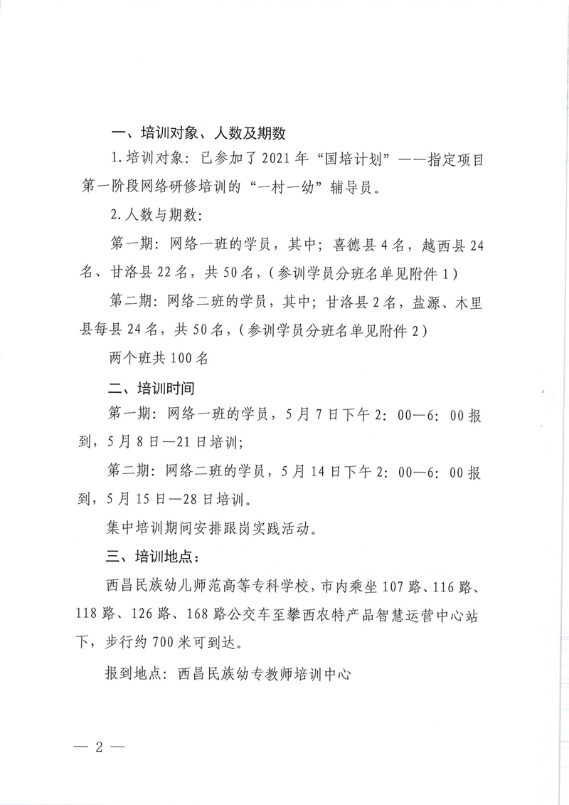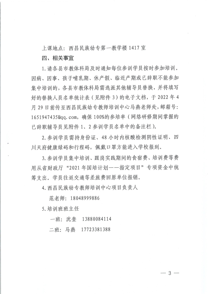 关于举办四川省“国培计划(2021)”——指定项目民族地区幼儿园教师集中培训班的通知