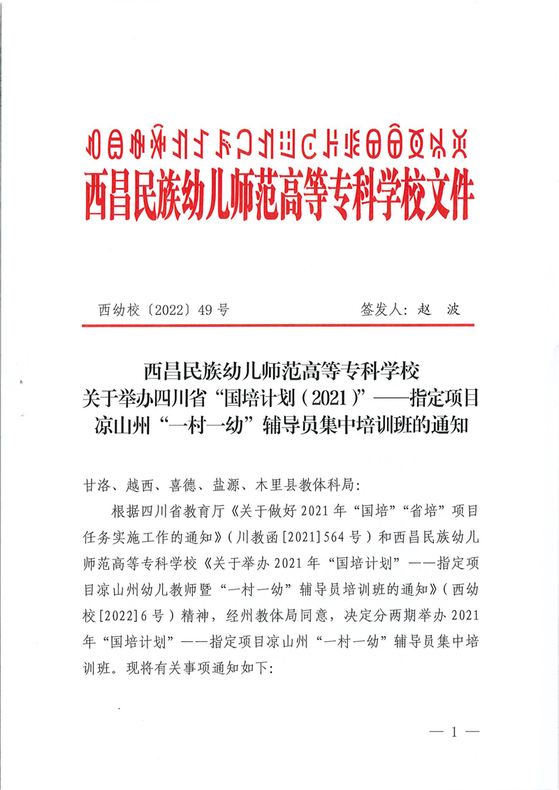 关于举办四川省“国培计划(2021)”——指定项目民族地区“一村一幼”辅导员集中培训班的通知