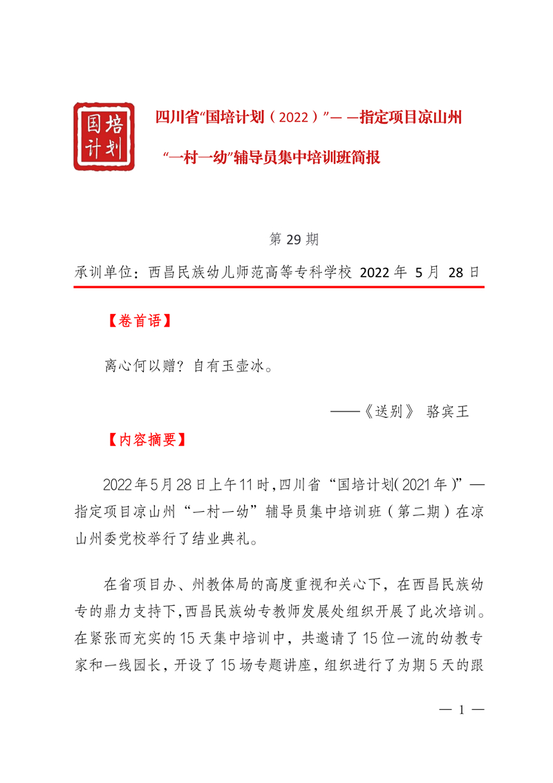 四川省“国培计划(2021)”——指定项目民族地区“一村一幼” 辅导员集中培训班(第1期)结业简报