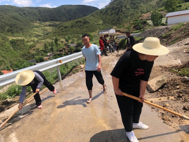 冲锋在前的抢险救灾员。驻村第四天,当地突发暴雨,引发了小范围的洪灾。万幸采乃坚村并没有人员伤亡,但是暴雨冲垮了通往采乃坚的唯一一条公路,冲断了电线杆和网络线路,泥沙沉积堵塞了道路和上游水源,部分村民的房屋漏雨、牲畜丢失……驻村帮扶工作队第一时间组织开展灾后自救工作。安抚村民情绪、查看受灾情况、上报受损情况、协调组织施工队、村民一起疏通被大雨和山洪冲毁的道路和沟渠。