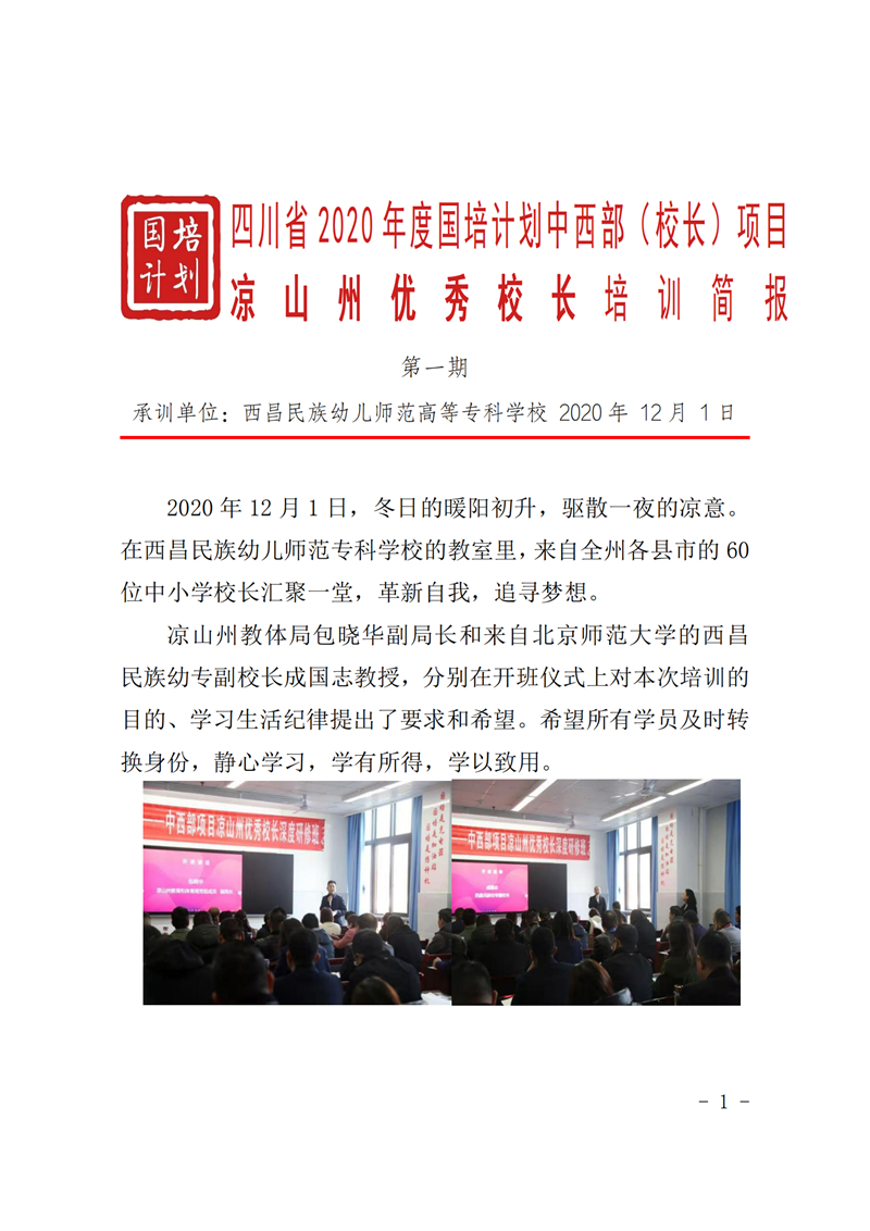 2020“国培计划”——中西部项目凉山州优秀校长深度研修班简报(第一期)
