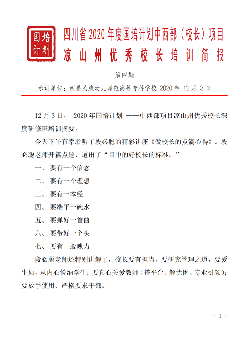 2020“国培计划”——中西部项目凉山州优秀校长深度研修班简报(第三期)