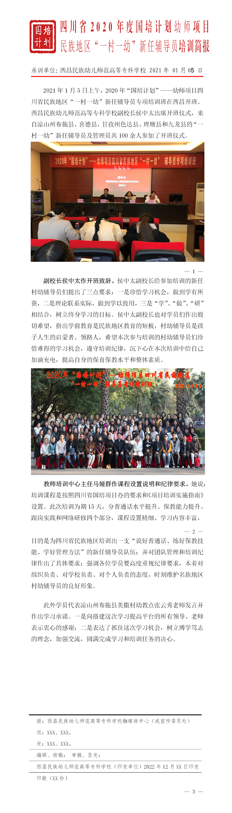 2020“国培计划”——幼师项目 民族地区“一村一幼”新任辅导员培训开班仪式简报