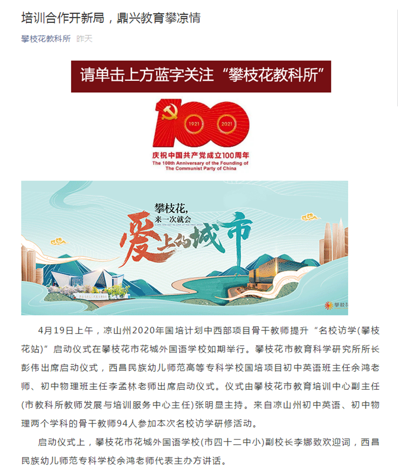 凉山州初中数学骨干教师提升培训项目跟岗活动在绵阳南山中学双语学校举行
