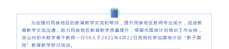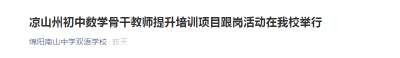 凉山州初中数学骨干教师提升培训项目跟岗活动在绵阳南山中学双语学校举行