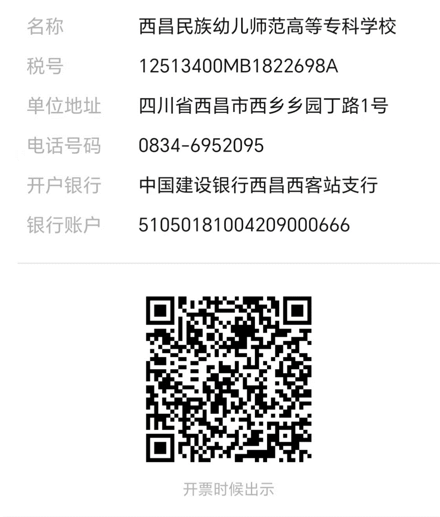 开户名称:西昌民族幼儿师范高等专科学校