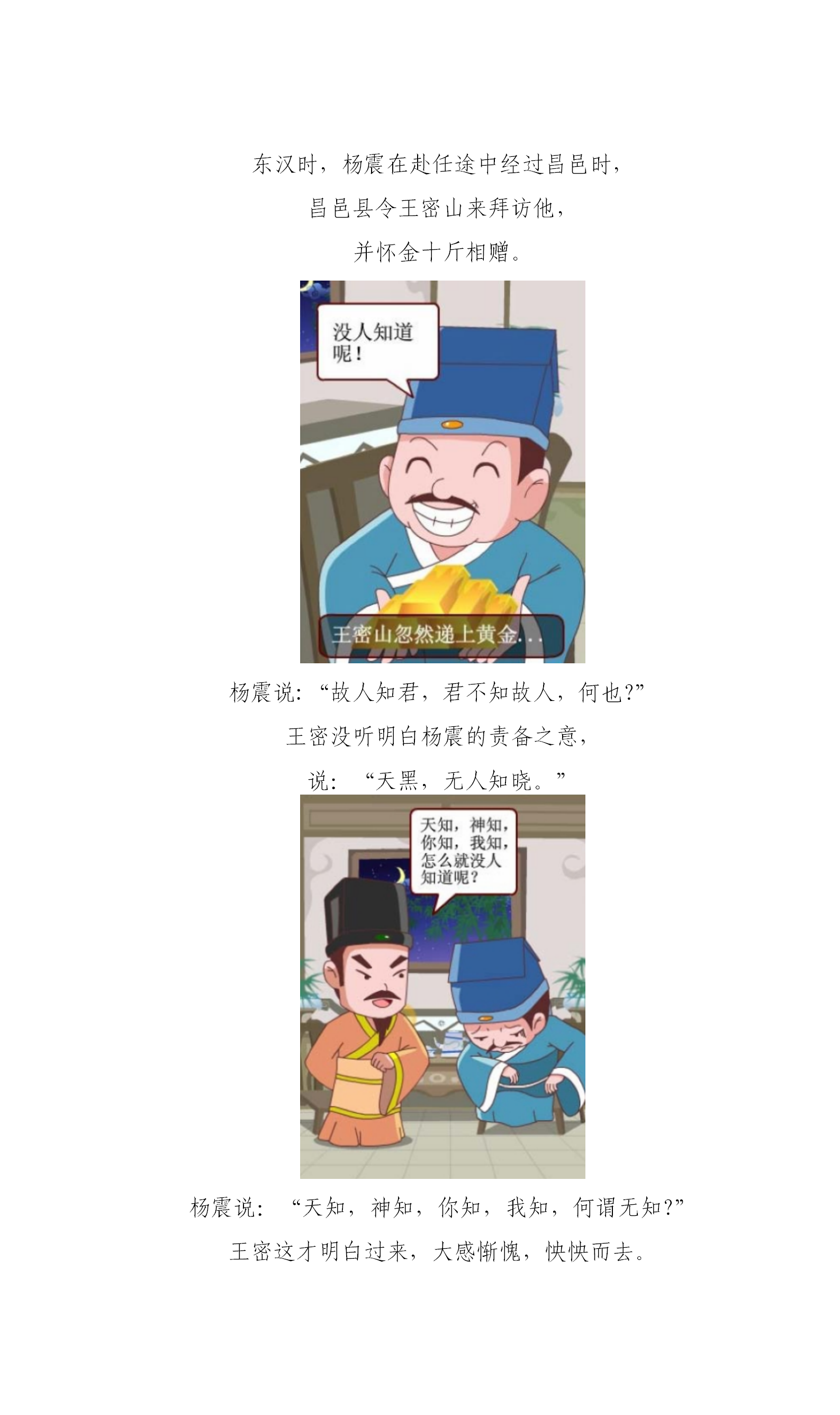 清风西幼 |廉洁故事之《杨震拒金》