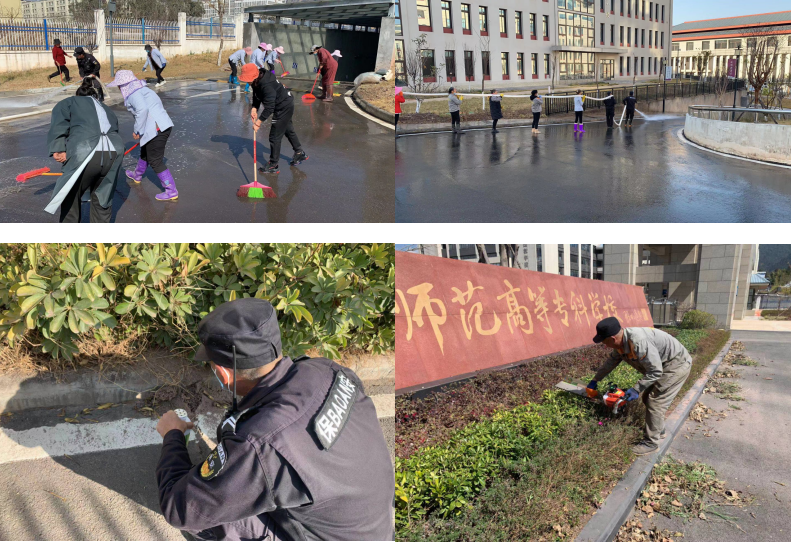 新学期开始,为给广大师生营造一个干净整洁的学习、生活环境,后勤管理处督促物业提前进入工作状态,做好开学各项准备工作,全面清理各办公、教学楼以及校园环境卫生,以饱满的工作热情,做好新学期物业服务保障工作。