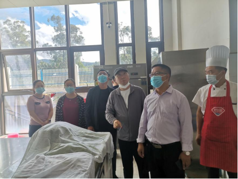 检查小组重点对食堂制度建设、食品原料控制、食品加工流程、新冠肺炎疫情防控及食堂环境等方面进行查看。