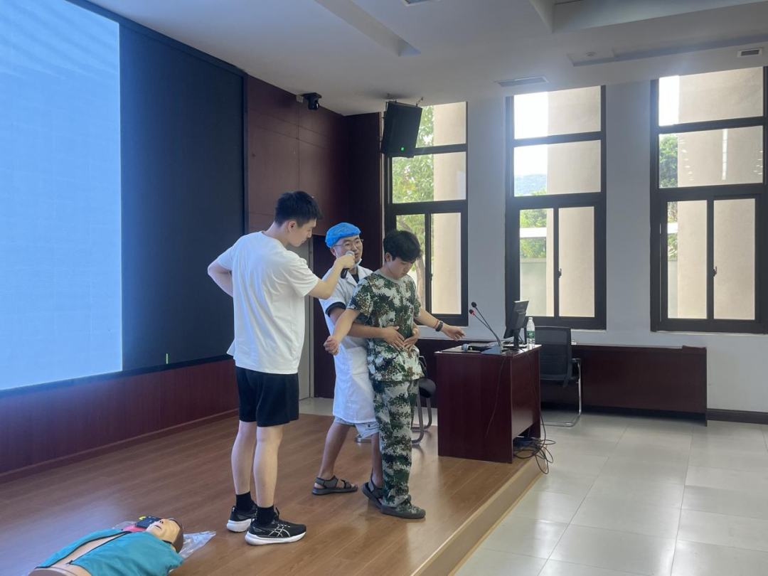 最后骆医生补充科普海姆立克急救法的操作方法,这是一个有关异物引起的上呼吸道阻塞,防止患者因为呼吸道梗阻而引起的窒息的急救方法,并邀请老师和同学上台演示。