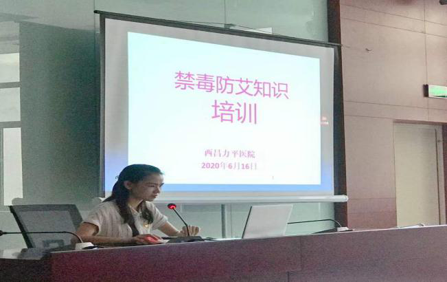 2020年6月16日下午14:30分,后勤管理处邀请西昌市力平医院医院感染管理科科长张晓凤为我校师生代表及食堂、超市负责人共计110余人进行疾病预防和禁毒防艾知识培训。