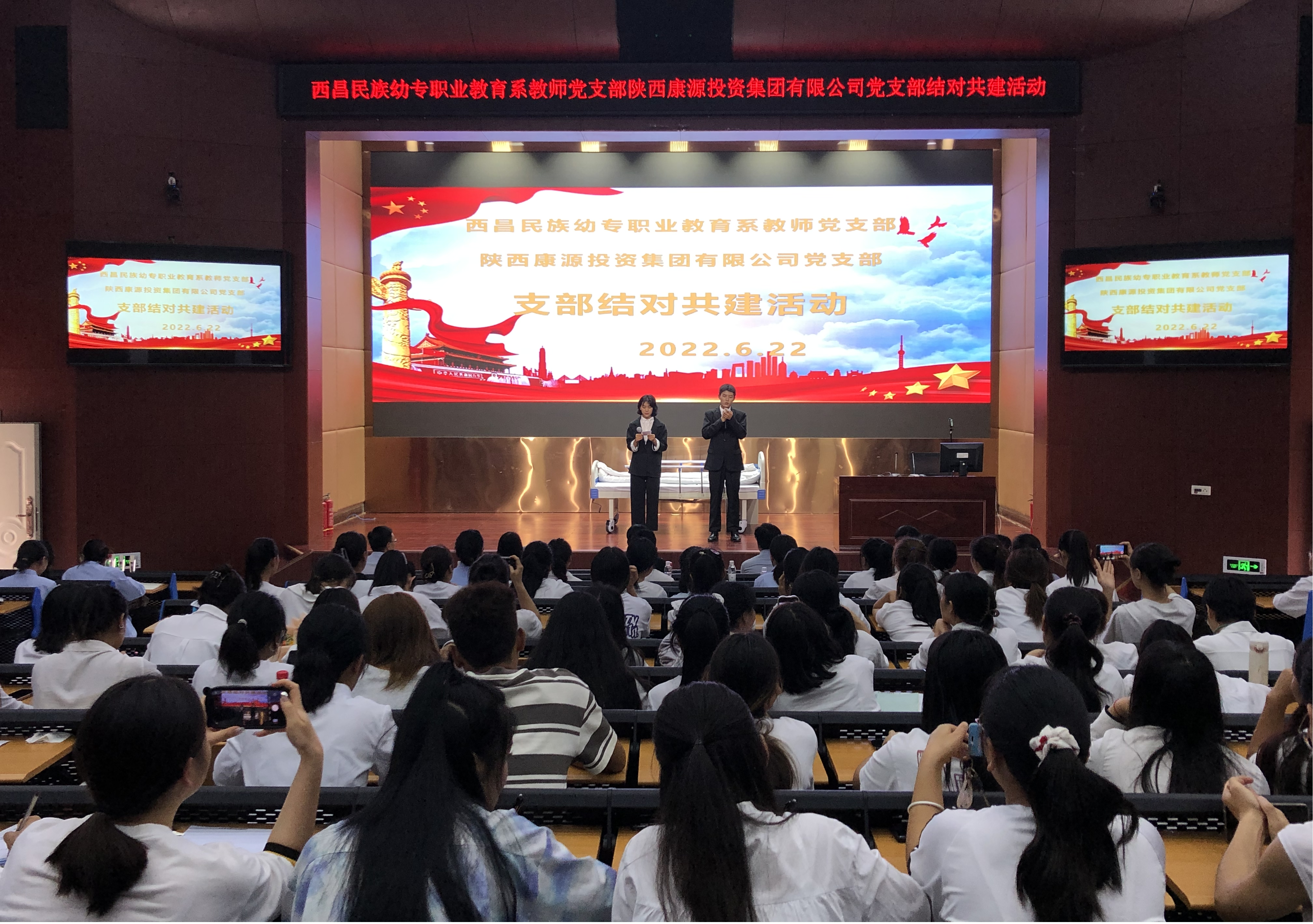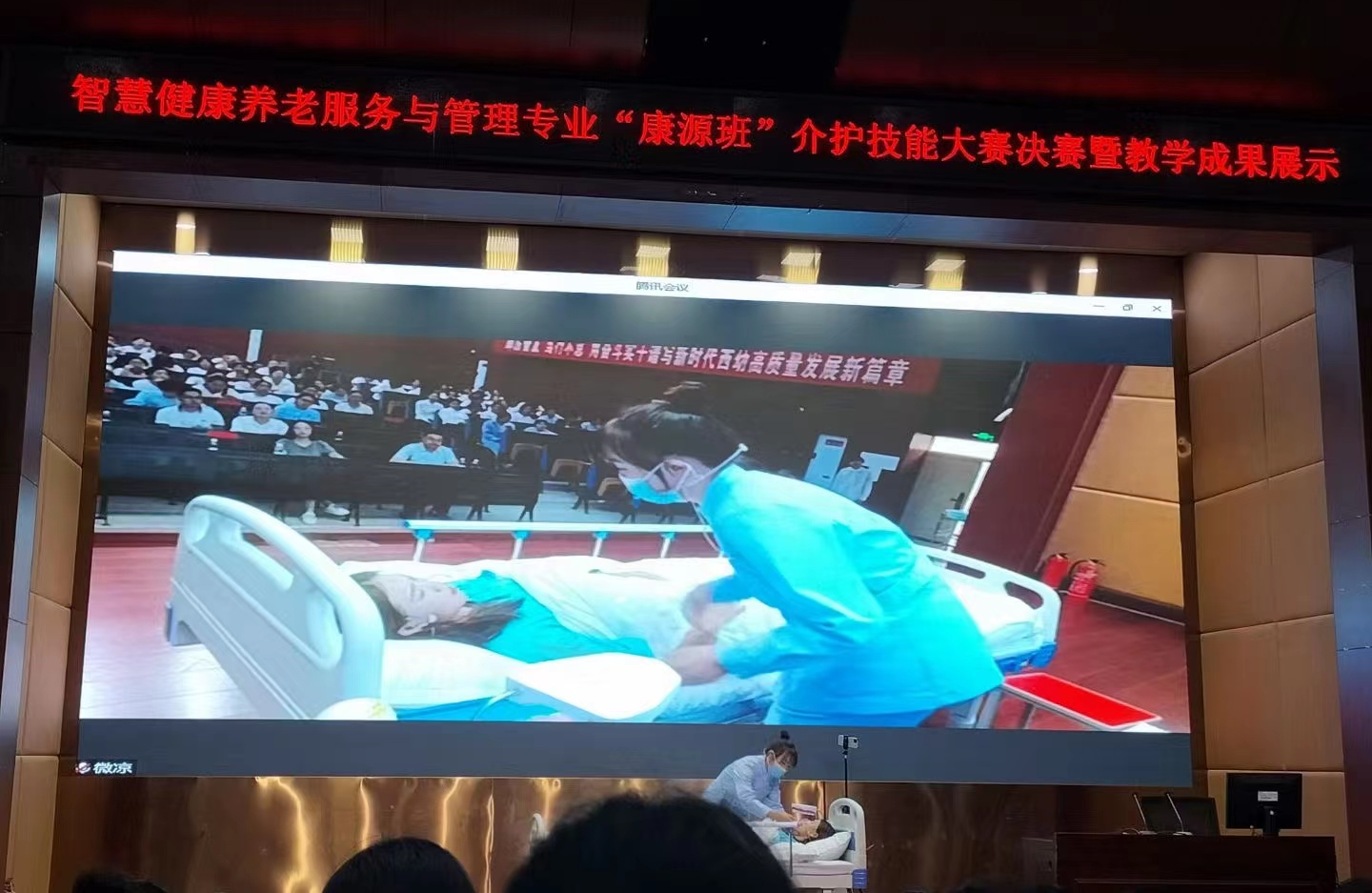 为全面加强和提高基层党建工作质量和水平,认真落实西昌民族幼儿师范高等专科学校、陕西康源投资集团有限公司校企合作协议,充分发挥基层党建引领作用,探索创新党建工作方法,推动支部党建工作优势互补、创新发展、共同提高,形成党建工作共建常态化合作机制。6月22日,西昌民族幼儿师范高等专科学校职业教育系教师党支部和陕西康源投资集团有限公司党支部共同主办,在学术报告A厅举办了智慧养老服务与管理专业“康源班”介护技能大赛教学成果展示。学校党委副书记、工会主席王玉萍,副校长侯中太,职业教育系主任曾艳,教务处副处长李明琦,职业教育系党支部书记李刚,组织人事处党桂红,职业教育系的师生代表共200多人参加本次活动。