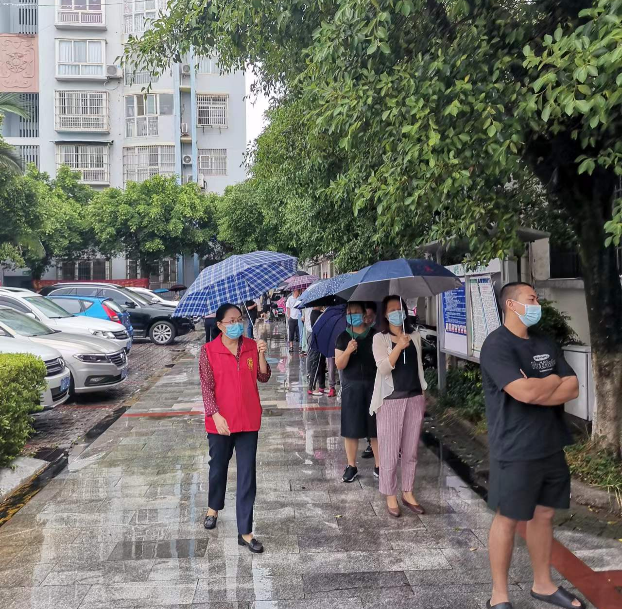 机关第二党支部党员志愿者面对疫情冲锋在前,冒雨逆行。党员同志们积极参与到社区志愿者服务活动中,与社区工作人员一起开展核酸检测人员集合、扫码及其他相关工作,当先锋,做表率,做到党员在哪里,工作就做到哪里。践行一切为了人民的初心使命,扎实履职尽责,源源不断地积极投身到抗疫各个环节,凝心聚力,团结一致,共同维护美好校园和家园,为打赢疫情防控战“疫”贡献力量。