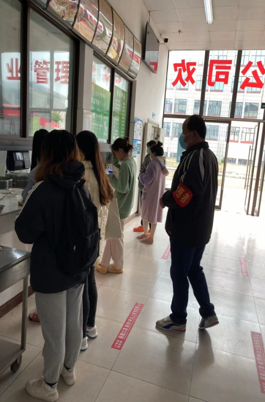 支部党员和预备党员教师共计21人次分别值守在学校食堂、图书馆、校门等地,协助维护就餐秩序、学习和进出校门疫情防控相关秩序。