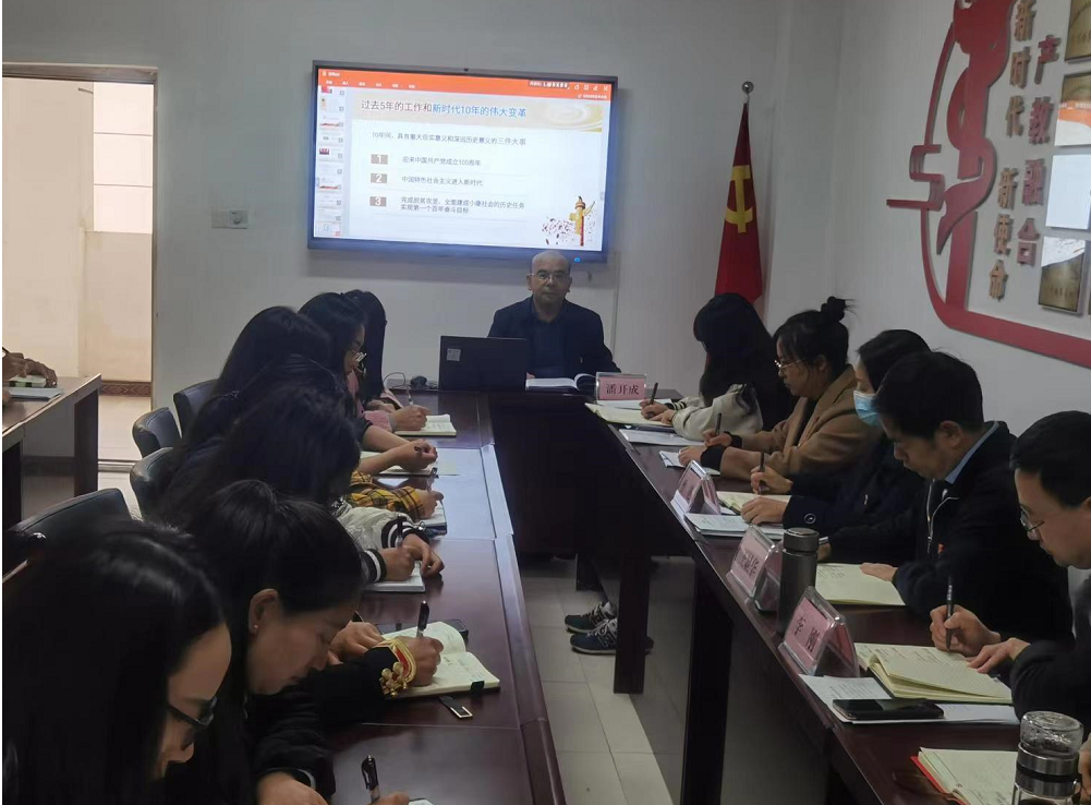 为推动党的二十大精神深入基层,2023224日,职业教育系教师党支部联系领导,校党委委员、组织人事处处长潘开成同志对职业教育系全体教职工开展党的二十大精神宣讲。联合党总支书记王显华、职业教育系主任曾艳,职教系教师党支部书记、职业教育系副主任李刚及系部教职工参加活动。