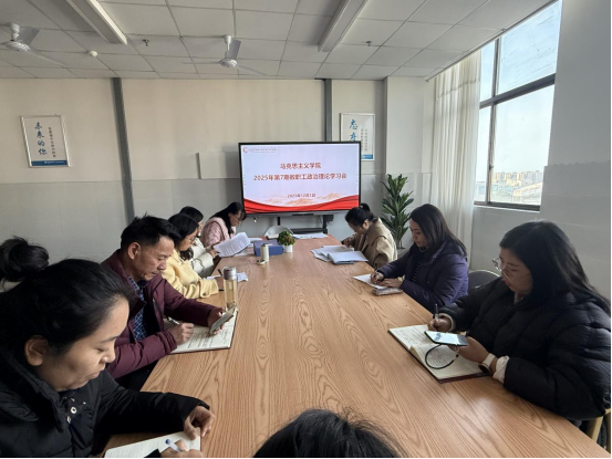 为深入学习贯彻党的重要理论精神和决策部署,切实把思想和行动统一到学校工作要求上来,12月1日,马克思主义学院在第一教学楼1407会议室组织召开2025年第7期教职工政治理论学习会议。会议由学院副院长何梦琳主持,全体教职工参加。