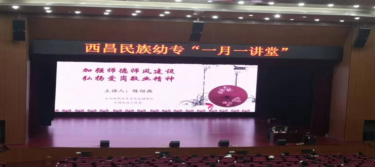 为加强师德师风建设,切实提高教师职业道德水平,4月12日下午,我校特邀凉山州民族中学党委副书记、全国先进工作者陈绍燕同志在雏鹰剧院开展了以“用真心成就 用爱心守护——一名教师的成长之路”为题的讲座。讲座由思政课程教学部主任柯黎主持,校党委副书记、工会主席王玉萍,党委委员、纪委书记沙德康出席讲座,各部系教师、学生代表共300人参加了讲座。