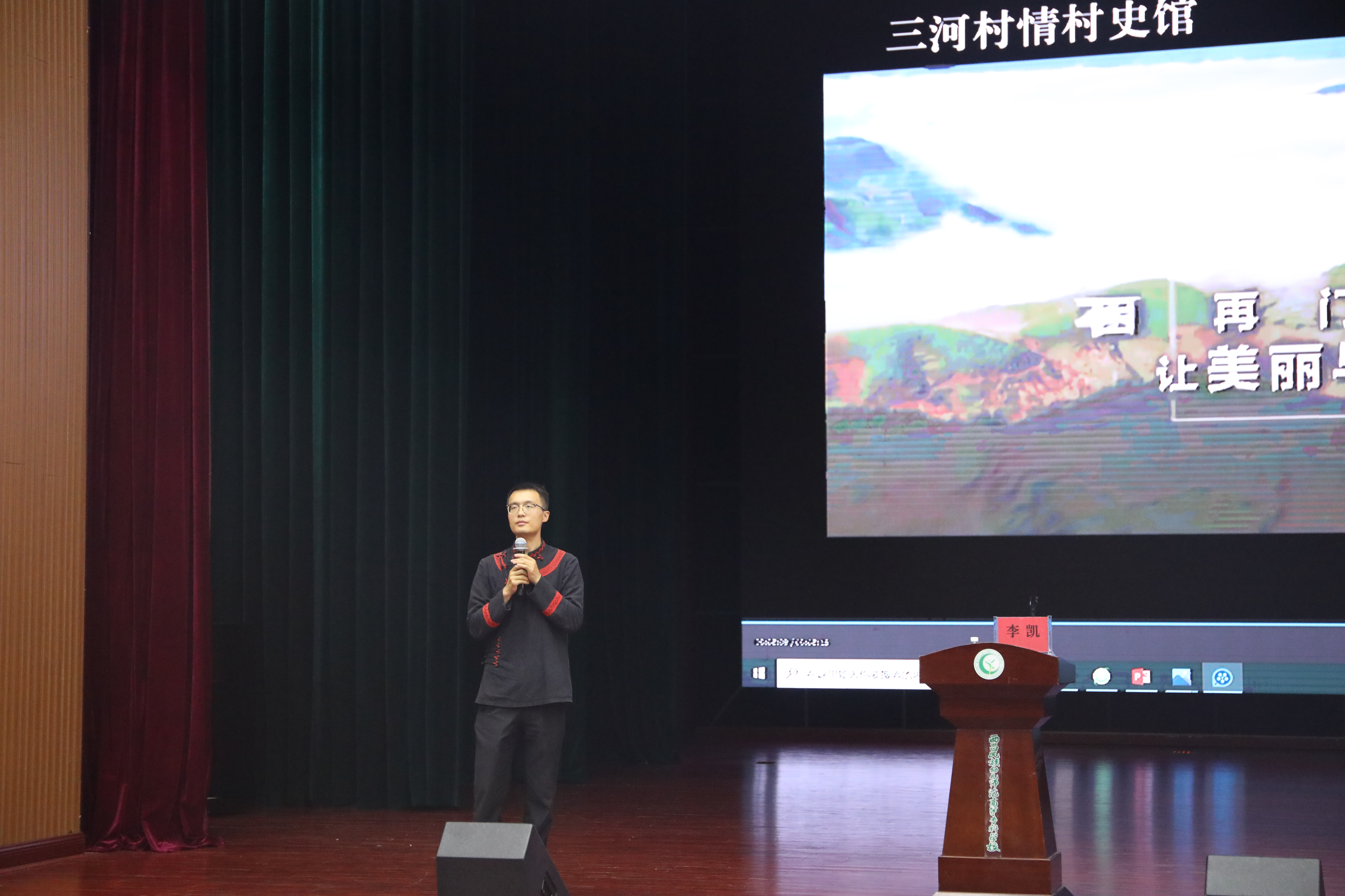 为弘扬爱岗敬业精神,充分发挥先进典型的示范作用,5月24日下午,我校特邀西南石油大学党委宣传部网络文化与管理科科长、昭觉县三岔河镇三河村第一书记李凯在雏鹰剧院开展了以“爱岗敬业,在平凡中铸就不凡”为主题的讲座。讲座由思政课程教学部主任柯黎主持,纪委书记沙德康,副校长马辉,宣传统战部部长邹春芸等校领导出席讲座,各处室、部系负责人、辅导员及学生代表共300人参加了讲座。