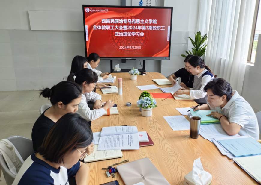 6月25日,马克思主义学院全体教职工大会暨第3期政治理论学习会在第一教学楼1407会议室召开全体思政教师参加会议本次会议由院长柯黎召集,副院长何梦琳主持。