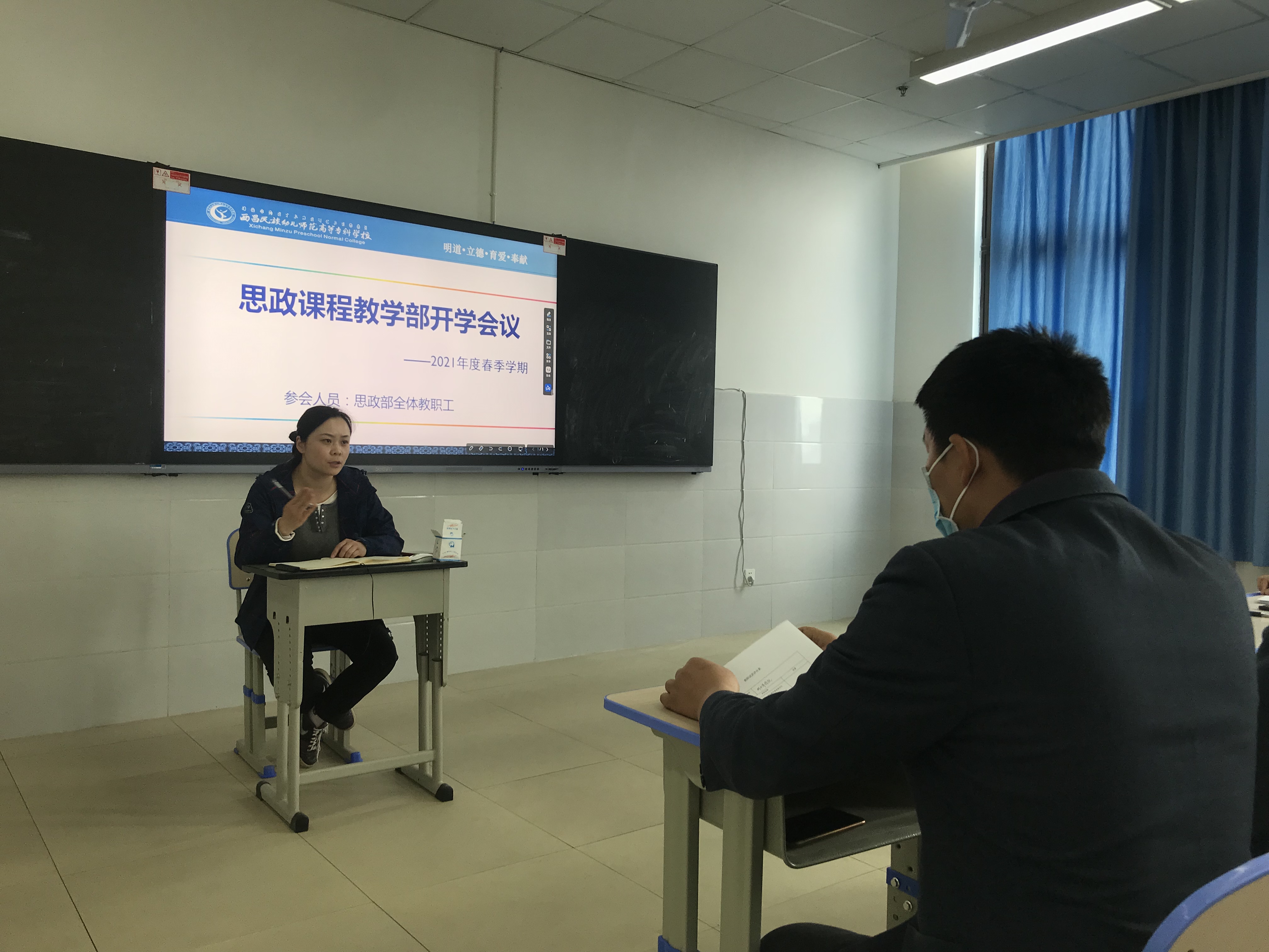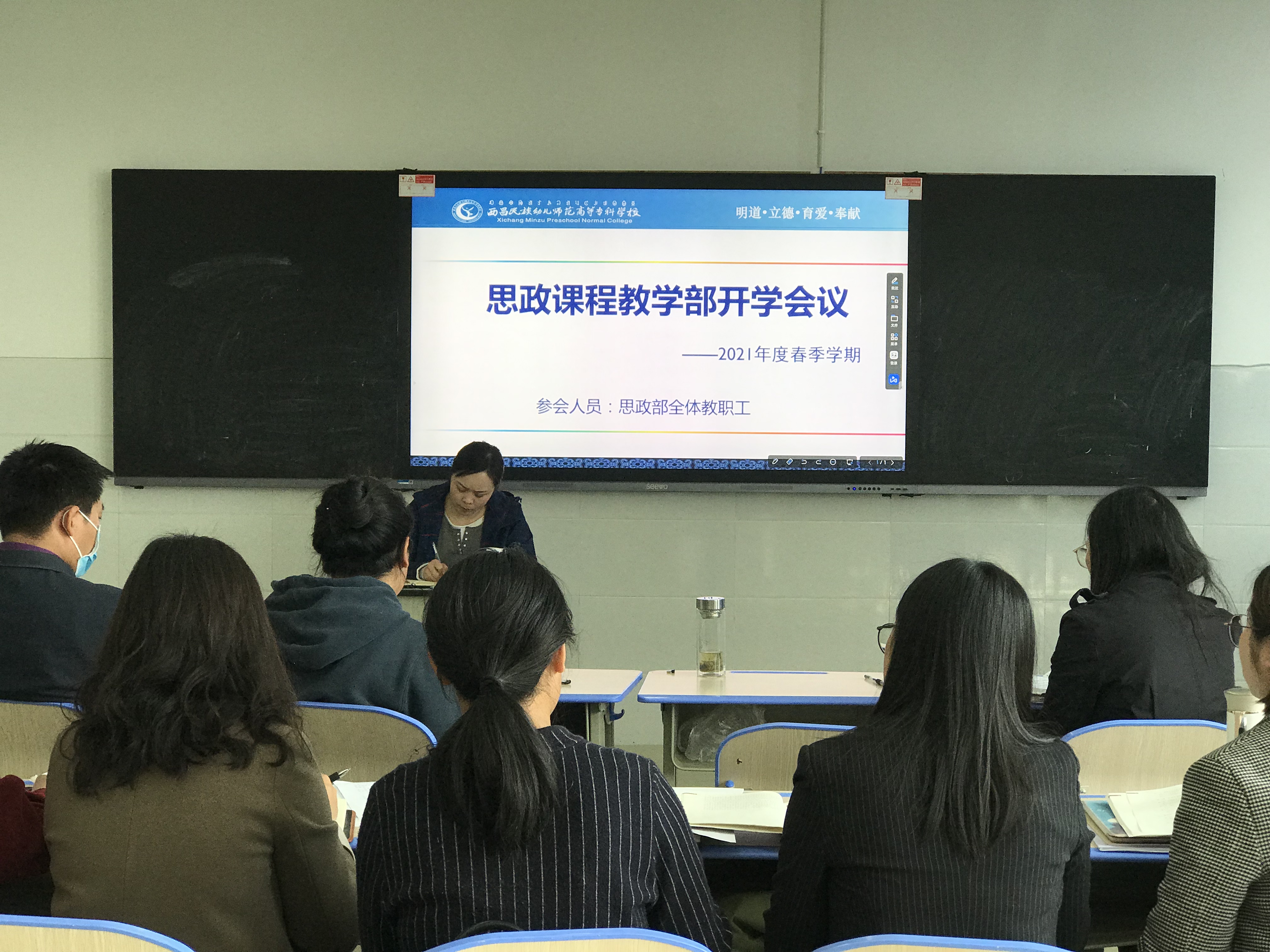 2月28日下午,思政课程教学部在第一教学楼1418教室召开了新学期开学工作会,部长柯黎主持会议,思政部全体老师参会。